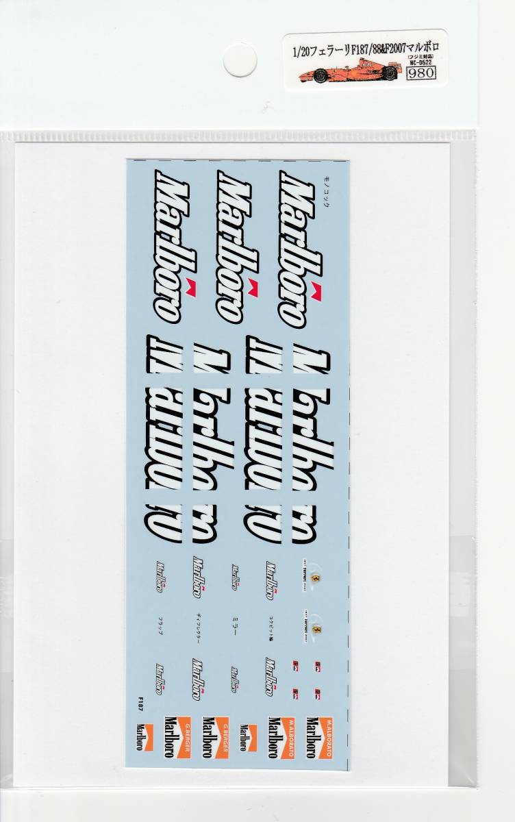 1/20フェラーリF187/88&F2007マルボロデカール [D522]